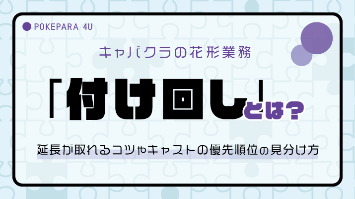 店の売上を大きく左右する仕事といえば、黒服の花形業務「付け回し」です。売上以外にも、お客様のリピーター率・キャストへの口コミ・店の評判など、あらゆる面に影響... -