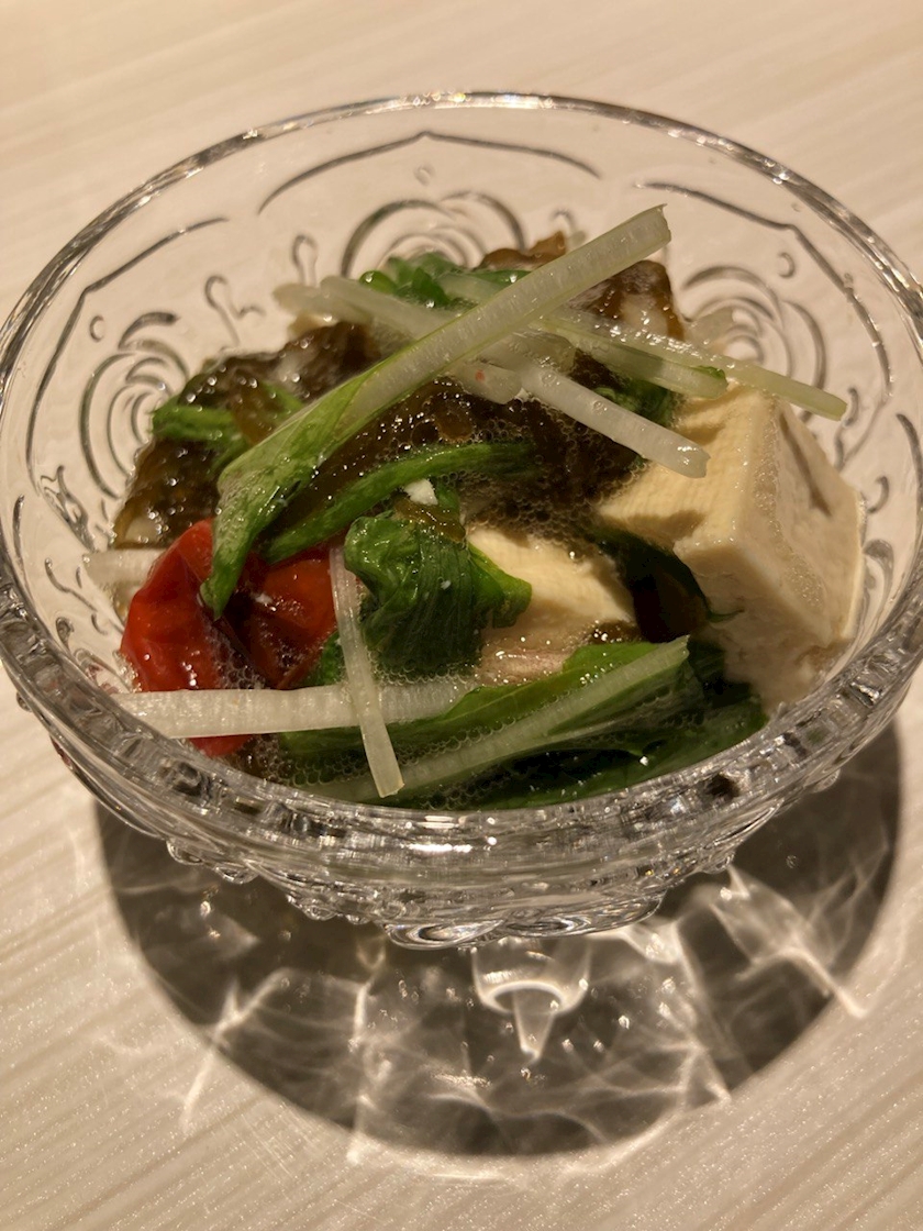 今週のチャームは、もずくと島とうふにみつばとトマトを和えたさっぱりしたチャームです👍