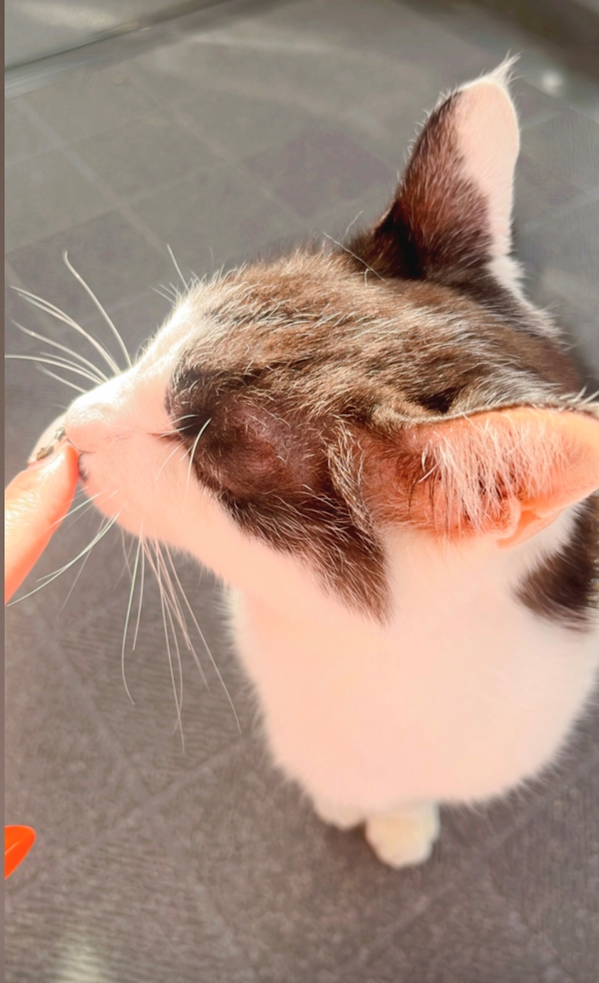 だいぶ良くなってはきたけど、一応風邪ひきさんなのでちゃんとパジャマに一枚羽織って、もこもこ靴下履いて、ネックウォーマーつけてベランダで朝活🐈