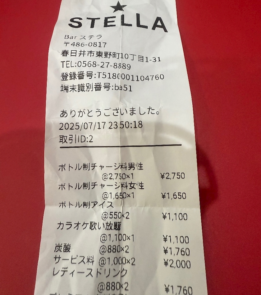 こんなふうにお会計時にレシートが発行されます