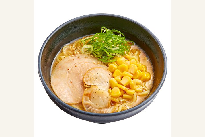お寿司の〆に嬉しいラーメン「北海道 ほっこり、あったか味噌ラーメン」は、北海道味噌とアゴ、サバ、にんにくをブレンドしたスープにふわっとバターが香る、濃厚かつ風味豊かな味わいが楽しめます。トッピングはホタテにコーン、チャーシューと具だくさんなのもうれしいポイントですね◎