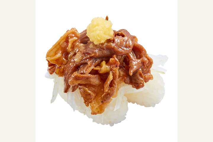 かっぱ寿司の本気は魚介だけではありません。脂の旨みがたまらない北海道産の牛カルビをつかった肉寿司も注目したいメニューの一つ。