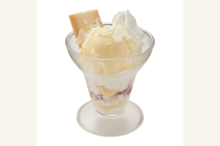 こちらはふわふわスポンジのクリームケーキに北海道産のマスカルポーネを重ね、北海道産練乳、削りホワイトチョコレート、サクサクのラングドシャクッキーをトッピングしたかっぱ寿司のオリジナルパフェ。