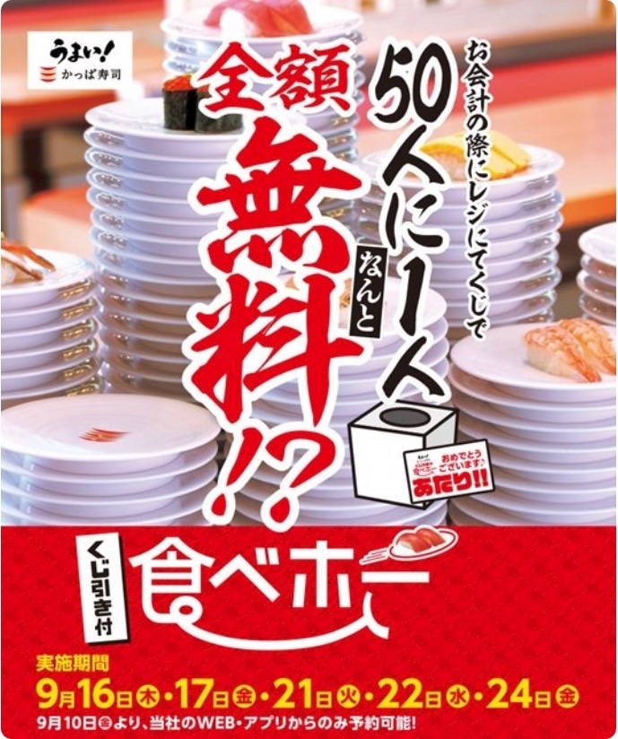 「くじ付き食べホー」は、9月中5回実施します。