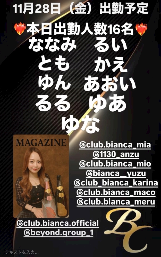 11月28日(金)出勤予定🗓️
