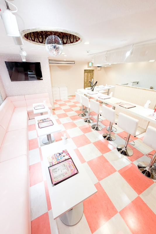 内装はキャンディーランドの妖精をイメージした可愛らしい夢の国で、カウンター10席とボックス3卓あります。