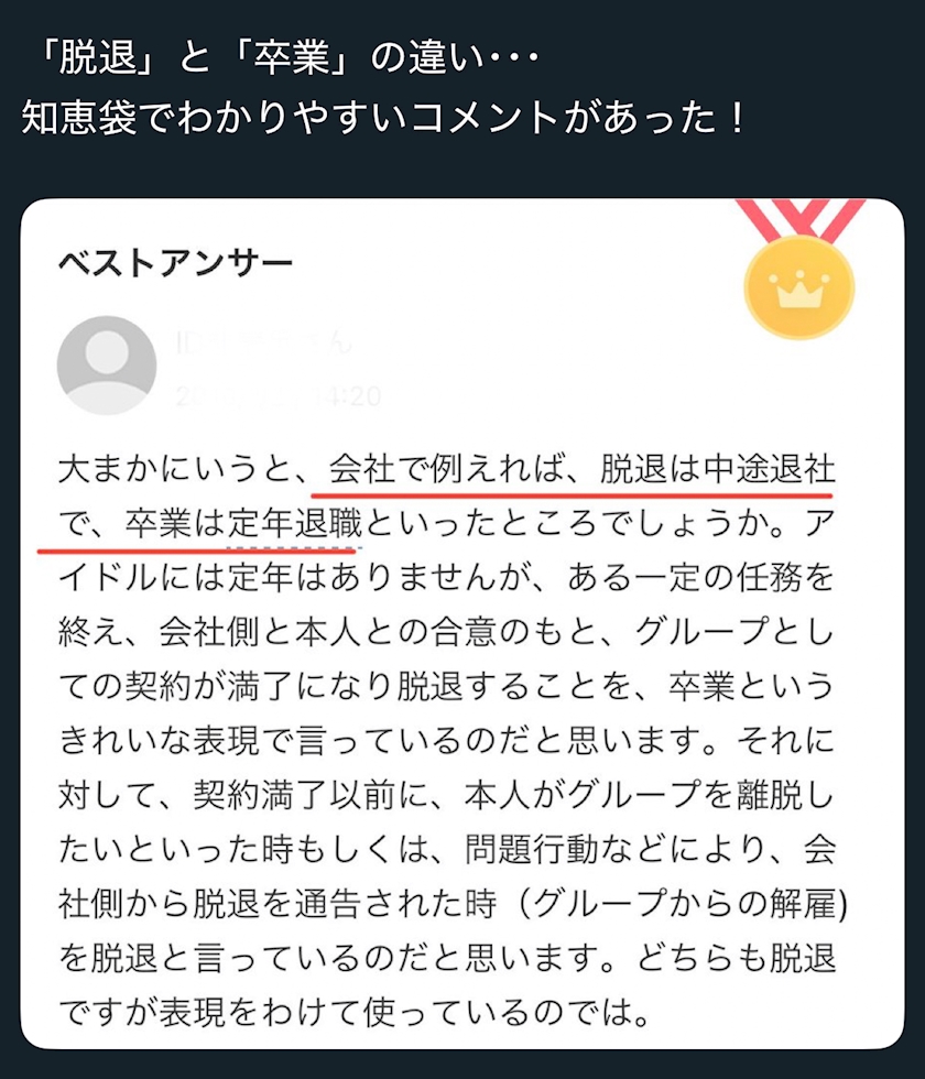 『脱退』を『卒業』という形で