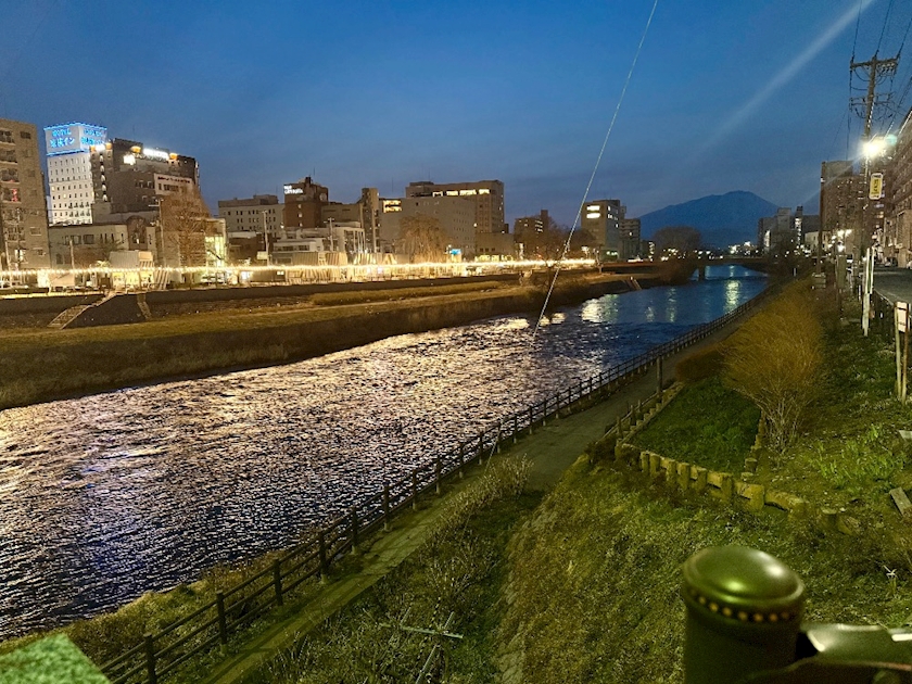 日が落ちた頃の開運橋からの岩手山の影が綺麗すぎました✨✨