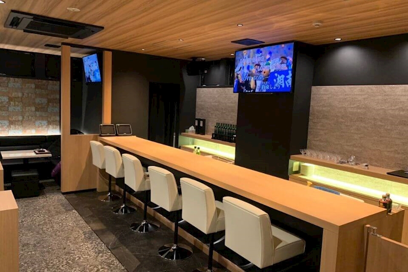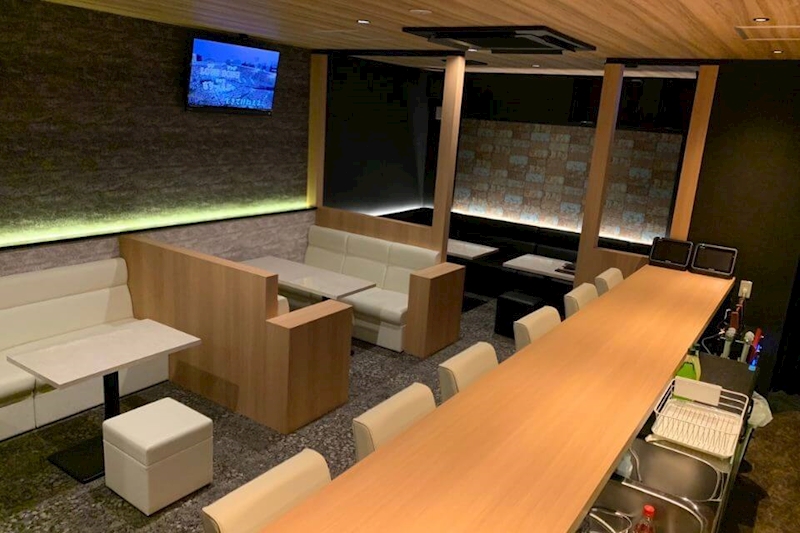 スナックアオは、白×黒に木目調のシンプルでありつつおしゃれな洗練された空間です。落ち着いた店内なので、無理にテンションを上げず自然体で働くことができます。