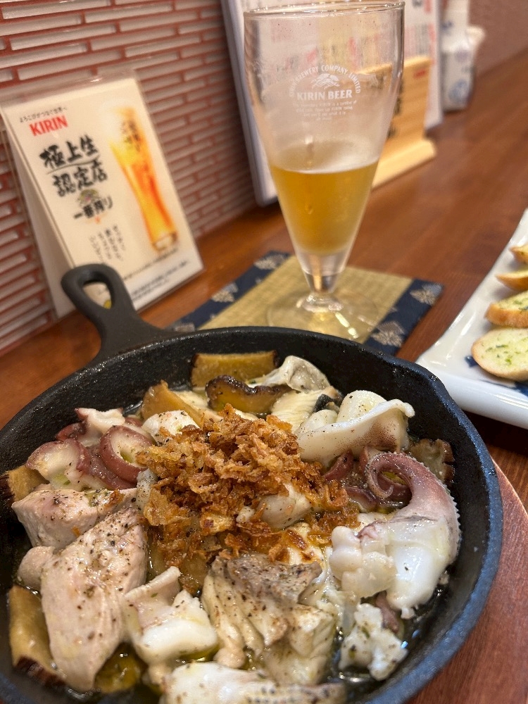 この間居酒屋でアヒージョを食べた!