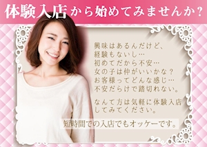 体験入店大歓迎!体入時給6,000円。