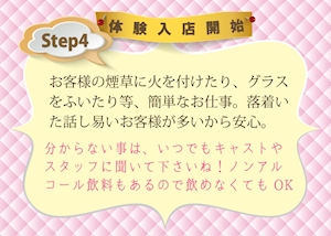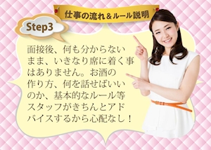 入店時給が4,500円スタートのとっても高収入な求人で、体験入店は時給6,000円のうえ、何度か体験することも可能。寮や託児所完備でレンタル衣装もありなので、これまでナイトワーク未経験の女性や、プライベートを優先させたい方にもおすすめ。お酒が飲めないから不安だ、という女性の方でも大丈夫、しっかりとしたサポート体制のもと助け合いながら楽しく働きましょう。