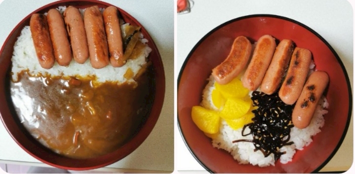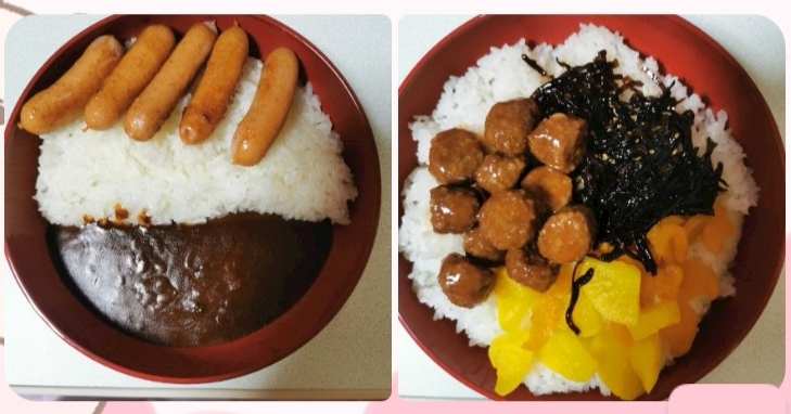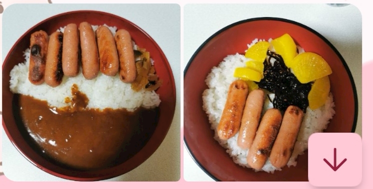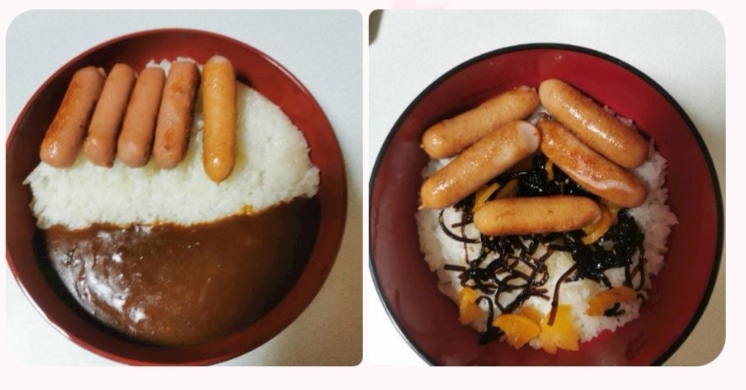 ウインナーとカレーと昆布とたくあん❤