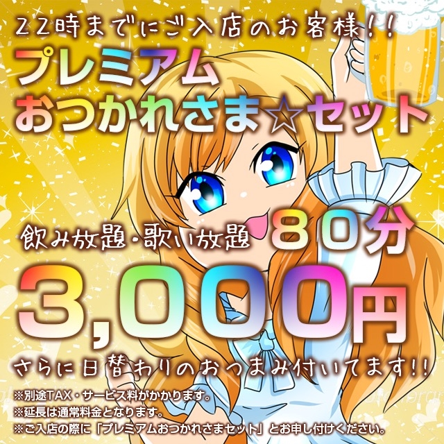 ・80分¥3,000-おつまみ付き<お疲れ様セット>