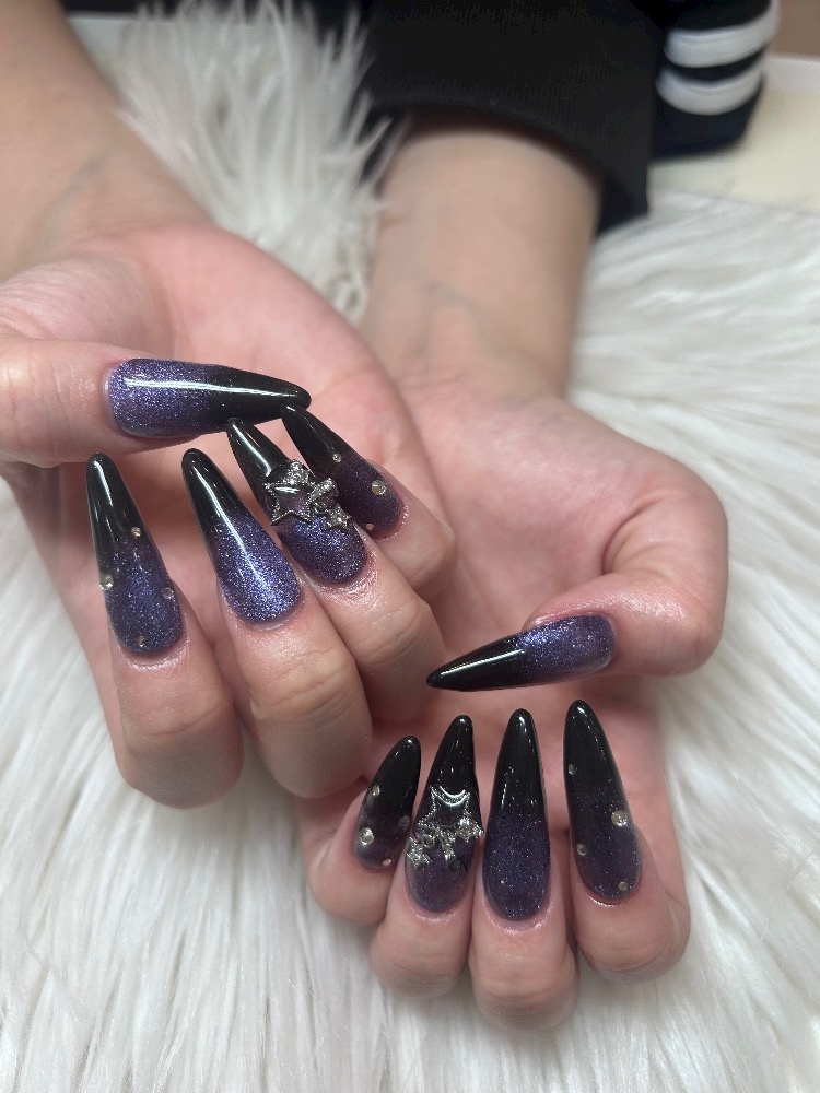 星空をイメージしたネイル、中々良いね🌠今回は長く持たせてね🎵今日は雪降らなくて良かったよ。でも一日中雨模様😭嫌になるね❗
