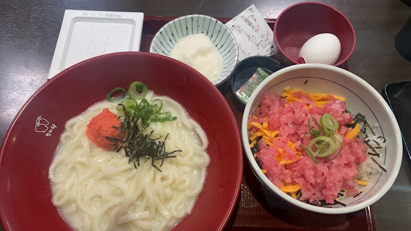 この日はネギトロ丼と明太子クリームうどん。。