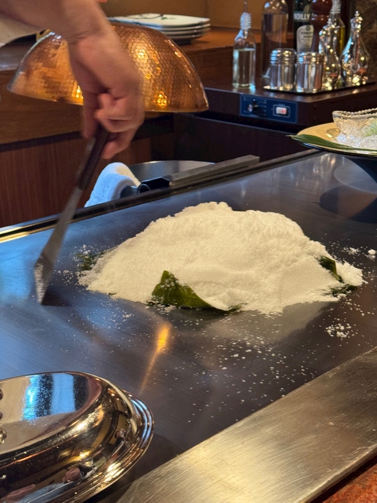 大量な塩で 焼いてくれる😊