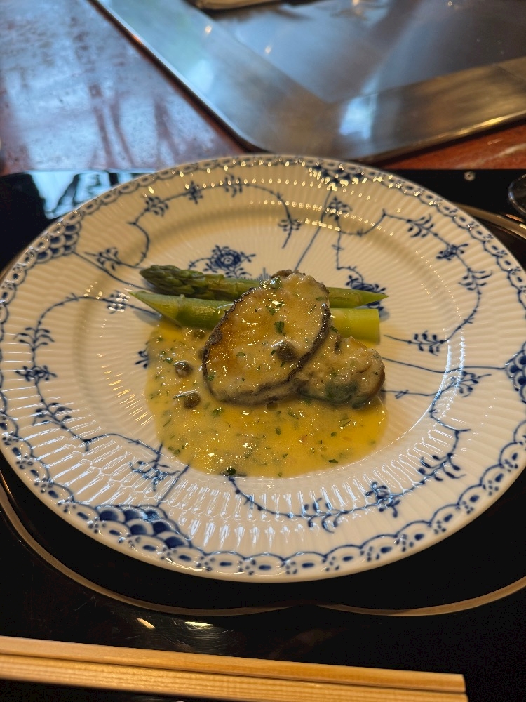 鮑も グリーンアスパラも