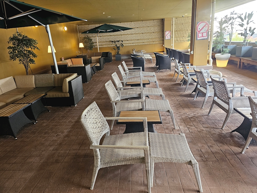 外の休憩スペースでのんびりしてから温泉に入りました✋️