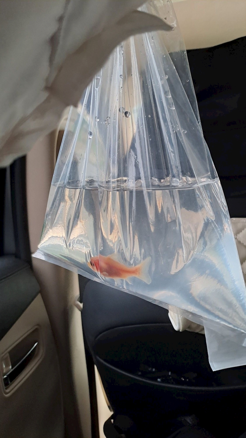 お祭りですくった飼えない金魚を