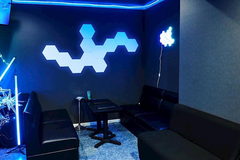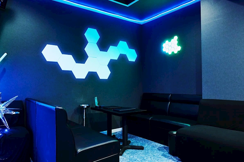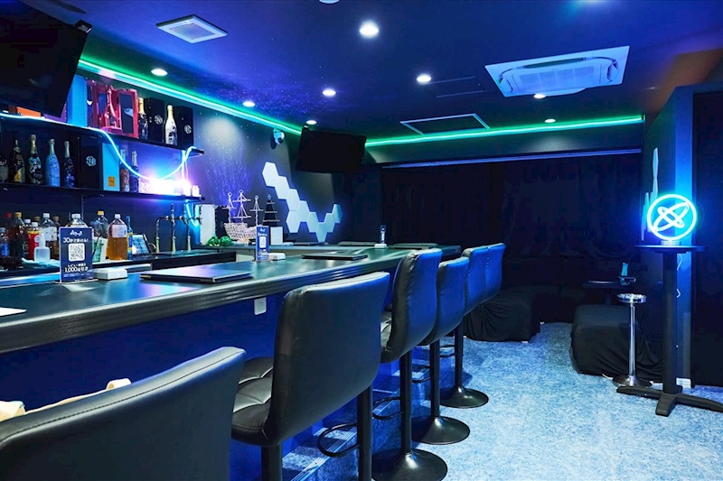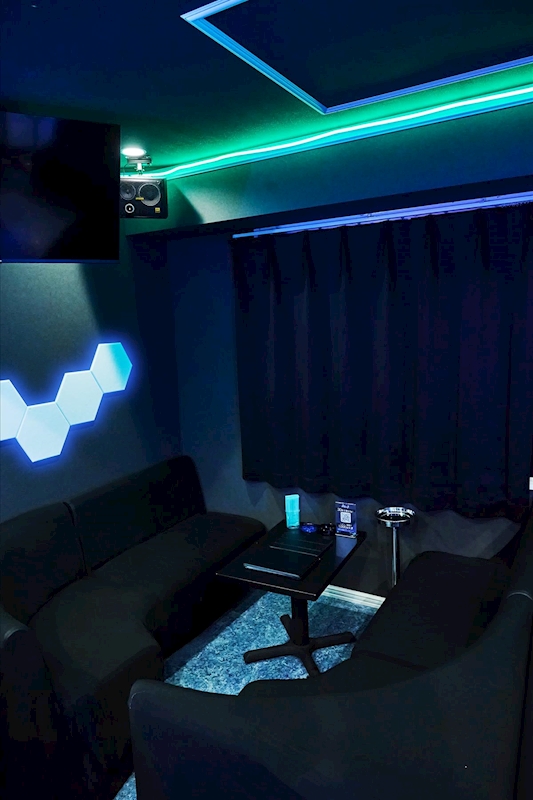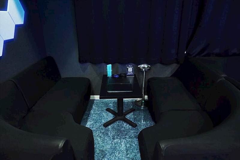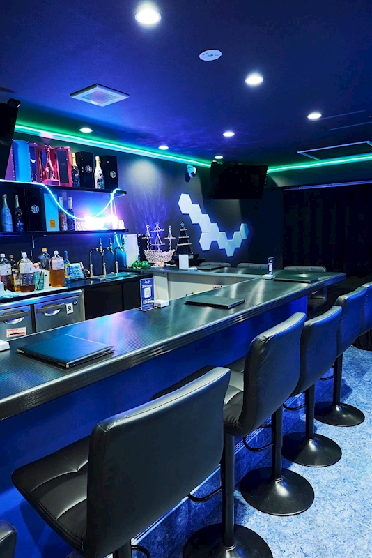 青い光に包まれたピカピカ綺麗な店内は